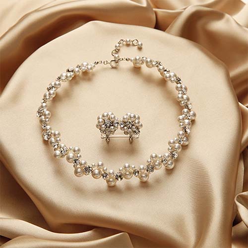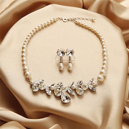 アクセサリーもデザインと品質を重視しています。なぜならウェディングドレスと花嫁様をより引き立たせるために、アクセサリーはトータルコーディネートとして大きな役割を担っているからです。小さなアクセサリーひとつで、ドレスや花嫁様の印象は大きく変わります。